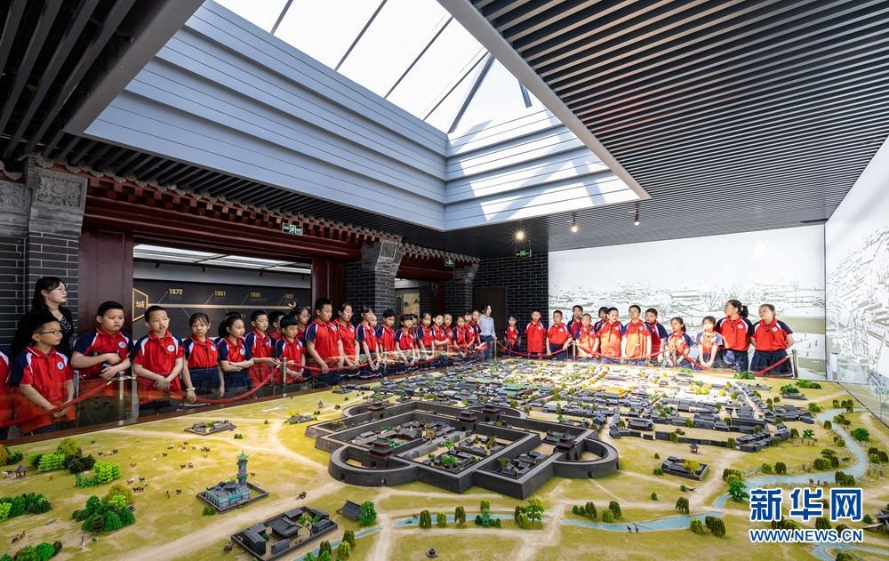 5月17日,呼和浩特市玉泉區(qū)南茶坊小學(xué)學(xué)生在歸化城展示館參觀。新華網(wǎng)發(fā)(丁根厚攝)