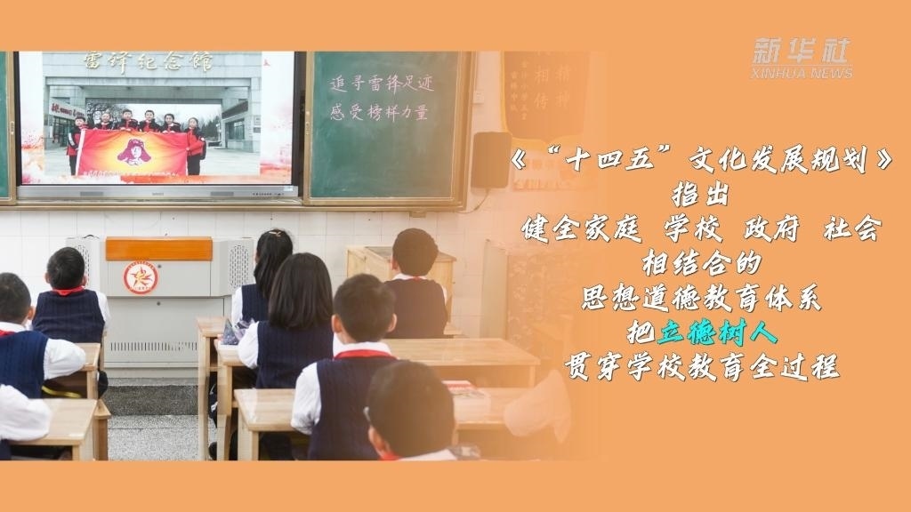 《“十四五”文化發(fā)展規(guī)劃》指出,健全家庭、學校、政府、社會相結合的思想道德教育體系,把立德樹人貫穿學校教育全過程。