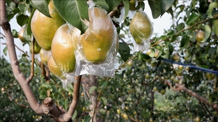 摘下一顆拳頭大小的紅香酥梨,削下果皮,雪白細(xì)膩的果肉在陽光下顯得格外晶瑩剔透。一口咬下去,汁水噴涌而出,“香甜”“清脆”是品嘗者的一致評(píng)價(jià)。