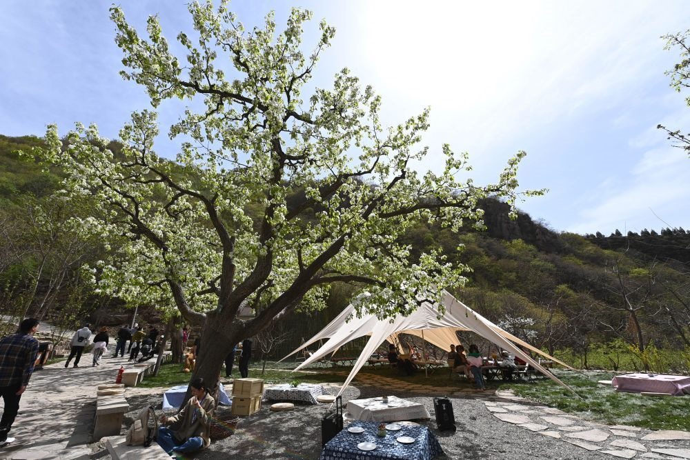 4月15日,游客在天津市薊州區(qū)梨木臺(tái)景區(qū)內(nèi)游玩。新華社記者 趙子碩 攝