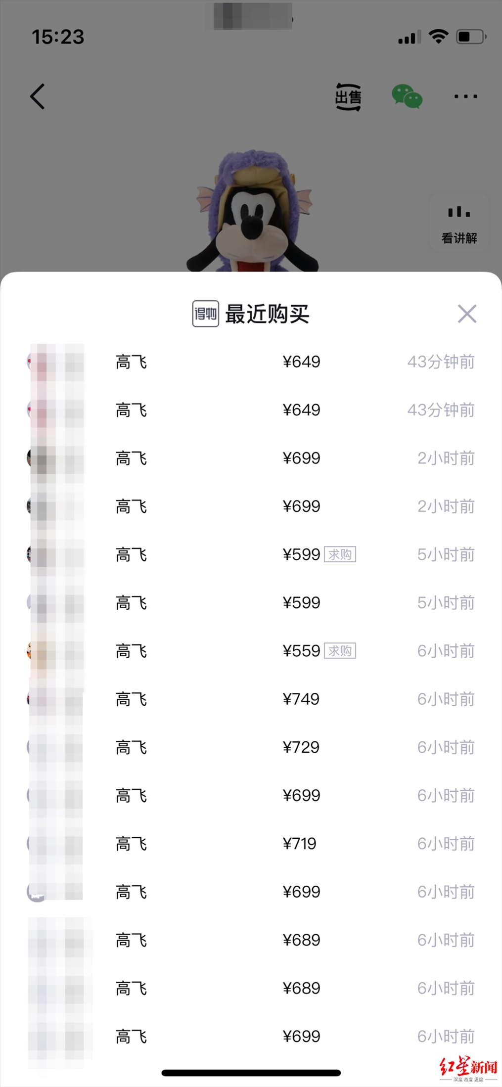 一位不愿意透露姓名的網(wǎng)友告訴紅星新聞,自己9月26日去上海迪士尼樂園,希望能購買“紫龍高飛”商品,然而大約中午就已斷貨?!肮ぷ魅藛T告訴我們,沒有貨了,不用排隊(duì)了。就是因?yàn)檫@樣,我后來才高價買了商品?!?/p>