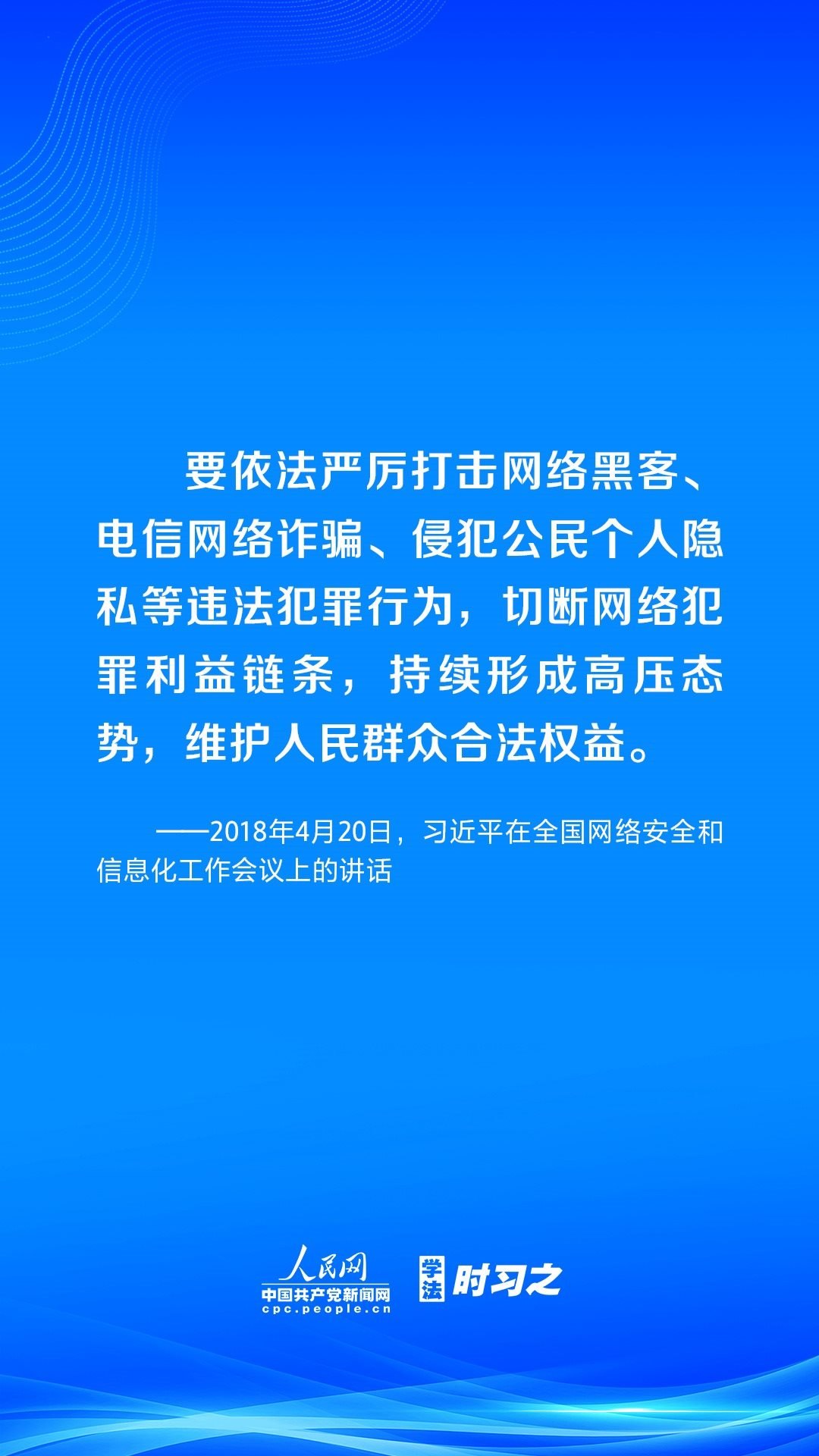 營(yíng)造風(fēng)清氣正的網(wǎng)絡(luò)空間,離不開法治手段的保障。黨的十八大以來(lái),習(xí)近平總書記高度重視網(wǎng)絡(luò)法治工作,強(qiáng)調(diào)要堅(jiān)持依法治網(wǎng)、依法辦網(wǎng)、依法上網(wǎng),讓互聯(lián)網(wǎng)在法治軌道上健康運(yùn)行。