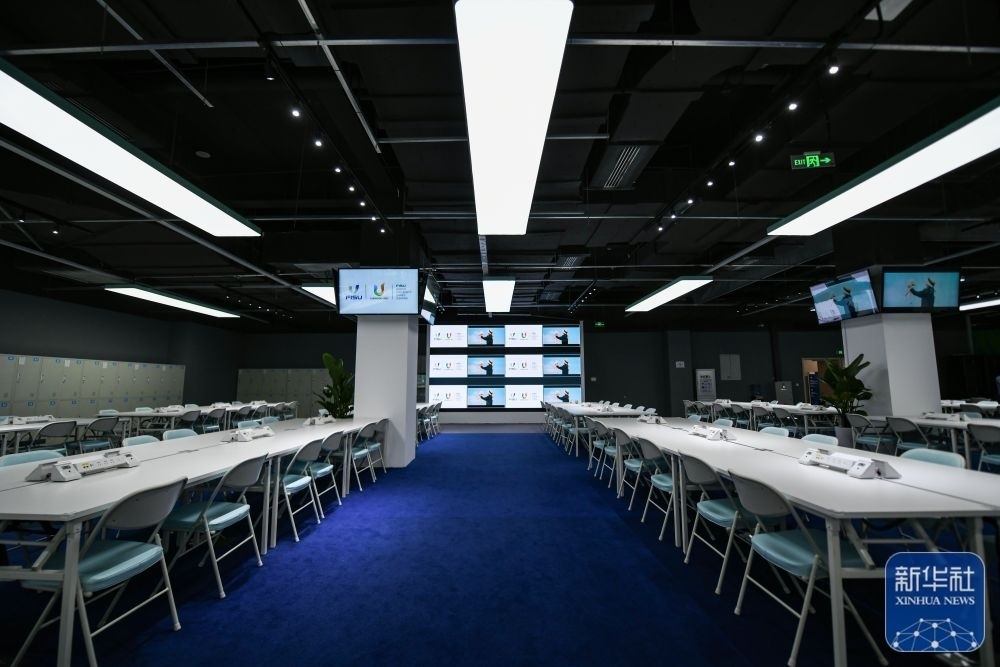 ?↑這是7月13日拍攝的成都大運(yùn)會主媒體中心的會客廳。新華社記者 王曦 攝