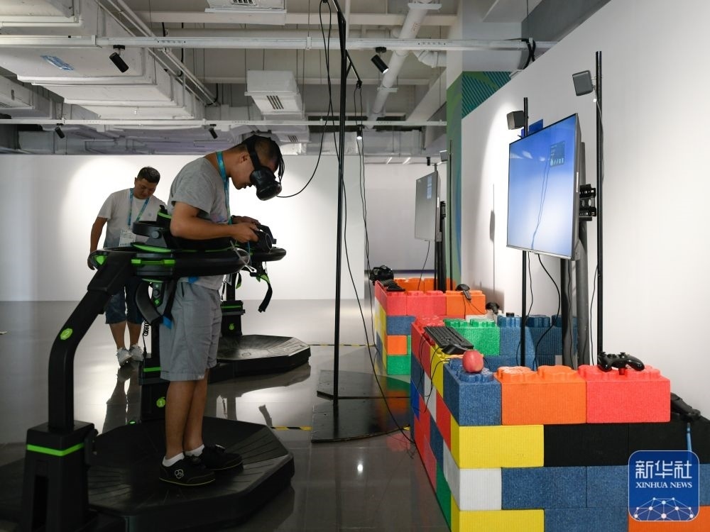 ↑7月14日,媒體工作人員在成都大運(yùn)會主媒體中心休閑娛樂區(qū)內(nèi)體驗(yàn)VR游戲。新華社記者 胥冰潔 攝