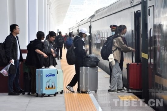 圖為乘客在林芝火車站 攝影:次旦拉姆