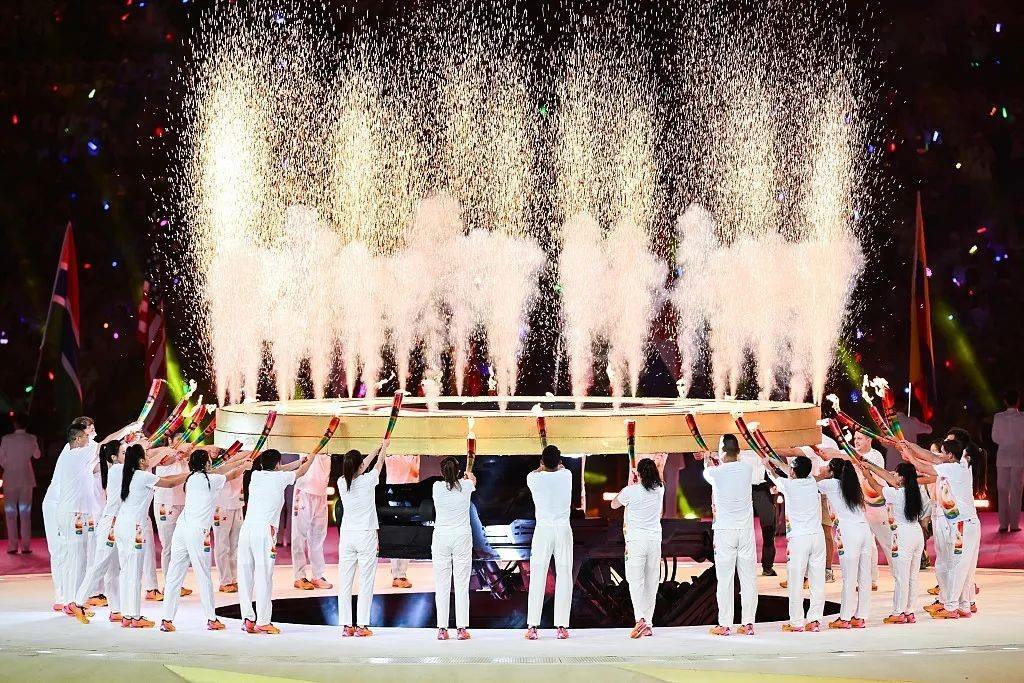 場(chǎng)外主火炬塔發(fā)出耀眼的光芒