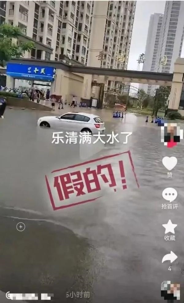 巡查還發(fā)現(xiàn)有網(wǎng)民發(fā)布視頻,標(biāo)有文字“樂(lè)清滿大水了”,內(nèi)容可見(jiàn)有小區(qū)門(mén)口積水嚴(yán)重,在道路停放的幾輛汽車(chē)被淹至車(chē)身一半。經(jīng)核實(shí),該視頻并非發(fā)生在樂(lè)清。發(fā)布視頻的網(wǎng)民陳某某(男,43歲)為吸引眼球捏造事實(shí),在某平臺(tái)賬號(hào)發(fā)布,造成負(fù)面影響,已被警方依法給予行政處罰。