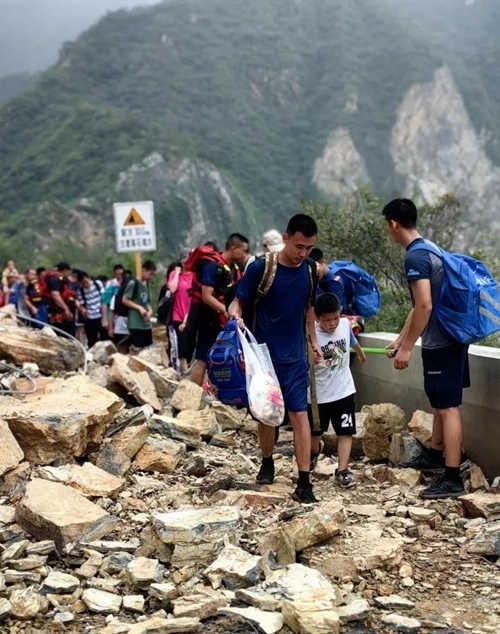 10多個(gè)消防官兵專門護(hù)送他們撤離,走過懸崖邊時(shí),消防官兵拿桿子擋在外面,再用身體連成一堵墻,以防他們掉下去。有的學(xué)生邊走邊說,“這次回去寫作文的素材有了,這才是真正的大場(chǎng)面?!?/p>