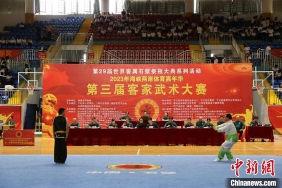 5日,第三屆客家武術(shù)大賽在福建省三明市寧化縣體育中心開賽,來自福建、江西、臺(tái)灣等地武術(shù)團(tuán)體、武術(shù)協(xié)會(huì)33支隊(duì)伍、500多名武術(shù)愛好者參加比賽。