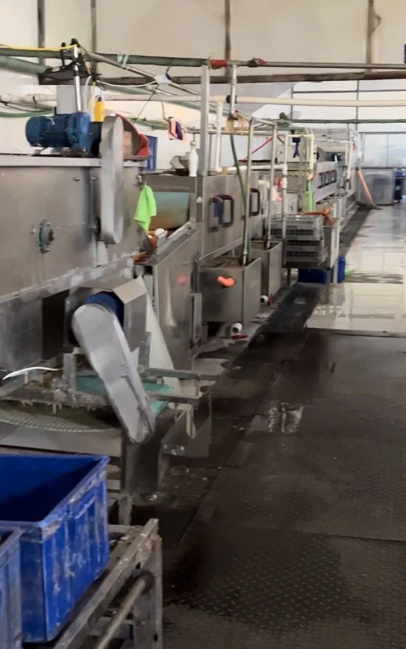 進(jìn)入廠房首先看到的就是一整車(chē)餐余垃圾,靠墻放置著多箱已使用后的餐具,地面上存有積水,機(jī)器處于停止?fàn)顟B(tài),工作臺(tái)上留有殘余垃圾,還有鞋墊在上面晾曬。在此期間有多輛小型貨車(chē)來(lái)裝卸餐具。