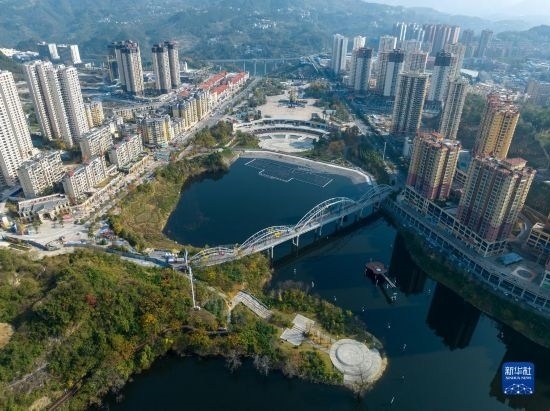 11月29日拍攝的貴州省遵義市正安縣濕地公園與民居一景(無(wú)人機(jī)照片)。
