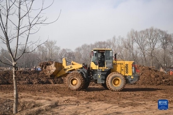 12月19日,救援機(jī)械在青海省海東市民和回族土族自治縣中川鄉(xiāng)金田村清理地震引發(fā)的砂涌。