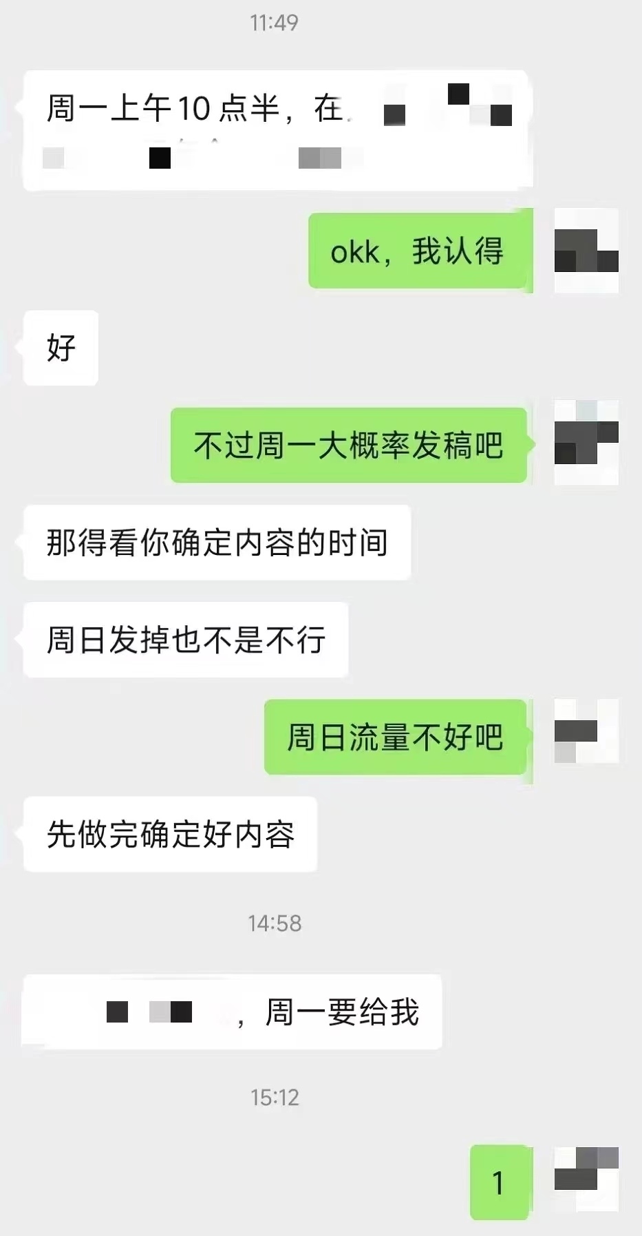 “周日流量不好吧?”她內(nèi)心氣不過,表面上卻只能迂回地勸對方改個主意。此時已經(jīng)是周五下午,距離原定的下班時間只剩下3個小時。但對方?jīng)]有理會,繼續(xù)發(fā)來消息:“先做完確定好內(nèi)容。”