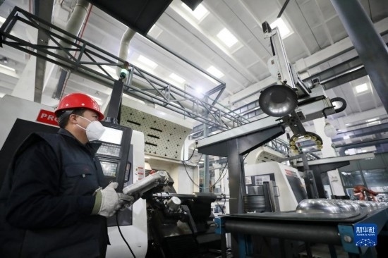 12月21日,在位于隆堯縣的河北遠(yuǎn)大閥門集團有限公司鍛鋼高端定制車間,工人操控智能設(shè)備加工閥門產(chǎn)品。