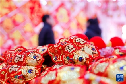 1月28日,市民在河南省焦作市武陟縣一處年貨市場(chǎng)選購(gòu)新年飾品。