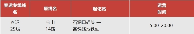 注:石洞口碼頭春運(yùn)專(zhuān)線運(yùn)營(yíng)日期為2月14日至3月5日。