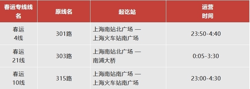 注:上海南站春運(yùn)專(zhuān)線運(yùn)營(yíng)日期為2月14日至3月5日。