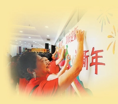 盛康園社區(qū)居民舉行迎新春聯(lián)歡會(huì),居民在畫布上寫下新春心愿。本報(bào)記者 李家鼎攝