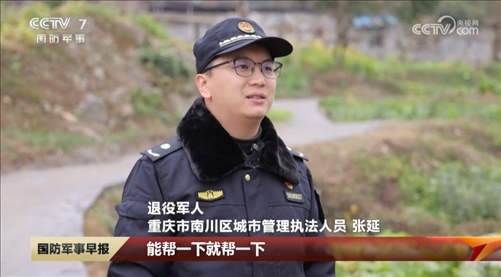 重慶市南川區(qū)城市管理執(zhí)法人員張延是一名退役軍人,看到老人年紀這么大了,孫子又在作戰(zhàn)一線,他常常幫助老人做一些力所能及的事情。