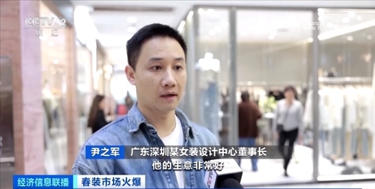 廣東深圳某女裝設(shè)計(jì)中心董事長(zhǎng) 尹之軍:今年的春裝賣得非常好,同比增長(zhǎng)20%左右。因?yàn)樘鞖獾膯?wèn)題,夏裝反而沒(méi)有想象中那么好,春裝準(zhǔn)備足夠充分的商戶,生意非常好,貨不夠賣。但是只準(zhǔn)備夏裝的商戶,他們現(xiàn)在都在期盼天氣趕緊熱起來(lái)。