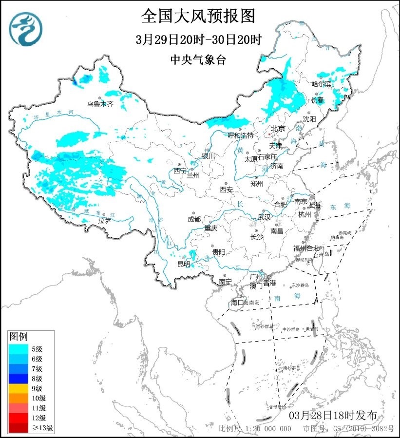 3月29日20時至30日20時,新疆北部、內(nèi)蒙古中東部、吉林東部等地有5級、陣風7~8級風。