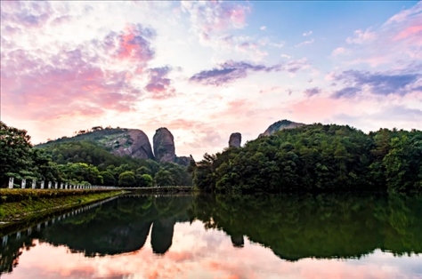 位于江西上饒市弋陽縣的龜峰,既有精雕細刻的靈巧,又有刀削斧劈的粗獷。景區(qū)內(nèi)有丹霞峰林、峰叢、孤峰石柱等自然景觀23種,有著“丹霞模式標(biāo)本”的美譽。