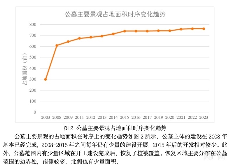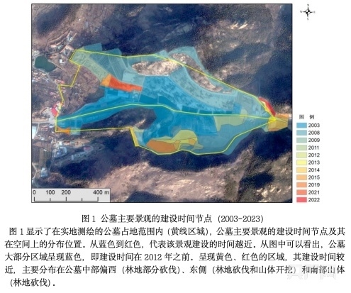 位于青島城陽區(qū)夏莊街道華陰社區(qū)太平山的太平陵公墓,地處嶗山山脈西麓,在嶗山風景區(qū)保護范圍內(nèi)。該公墓是1996年經(jīng)民政部門審批的經(jīng)營性公墓,合法審批面積為87.53畝。遙感衛(wèi)星影像分析顯示,該公墓大面積非法擴建已持續(xù)多年,存在毀林挖山建墓地的情況。