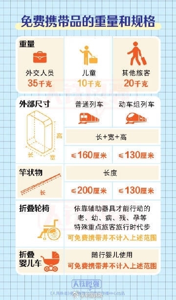坐火車出游的小伙伴請注意!有些物品過不了安檢,出發(fā)前趕快篩查行李單,隨手轉(zhuǎn)發(fā)?、侔b密封完好、標志清晰且酒精體積百分含量大于或者等于24%、小于或者等于70%的酒類飲品累計不超過3000毫升。②充電寶標志清晰,單塊額定能量不超過100Wh。③自噴壓力容器,單體容器容積不超過150毫升,每種限帶1件,累計不超過600毫升。④含易燃成分的非自噴壓力容器日用品,單體容器容積不超過100毫升,每種限帶1件。