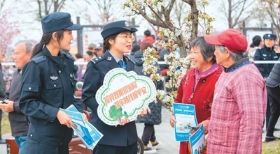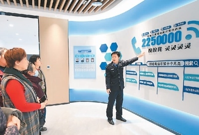 浙江省湖州市吳興區(qū)愛山街道警務(wù)人員向群眾介紹網(wǎng)絡(luò)反詐知識(shí)。新華社記者 翁忻旸攝