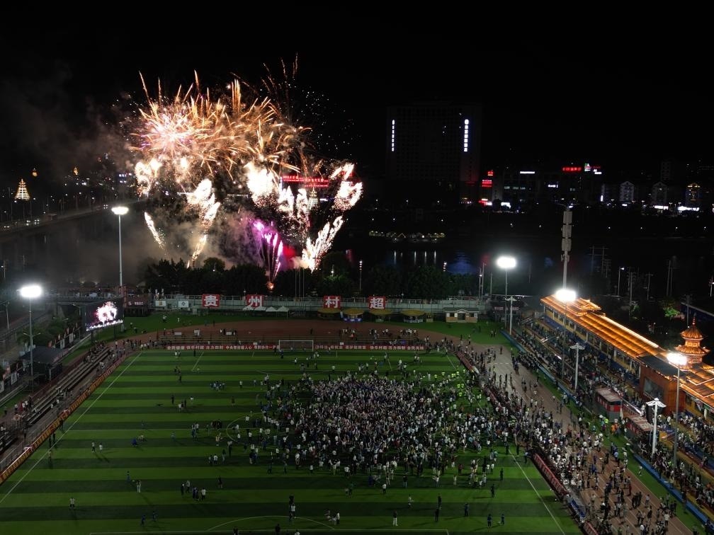 從全明星比拼,到中場(chǎng)的樂(lè)隊(duì)表演,再到終場(chǎng)的小型煙花秀,當(dāng)晚的慶?;顒?dòng)驚喜連連?!啊宄恢痹诔掷m(xù)打造文體‘嘉年華’,不斷豐富賽事內(nèi)容,力爭(zhēng)給球迷和游客帶來(lái)全新的體驗(yàn)和持續(xù)的歡樂(lè)?!辟F州“村超”組委會(huì)成員、榕江縣文化館館長(zhǎng)李莎介紹,“村超”新賽季開(kāi)啟決賽階段的比賽以來(lái),除了延續(xù)上賽季的拉拉隊(duì)巡演、美食投喂、中場(chǎng)表演等精彩內(nèi)容外,還推出了“全民K歌”和“萬(wàn)人蹦迪”等活動(dòng),體驗(yàn)感和歡樂(lè)度都得到了提升。
