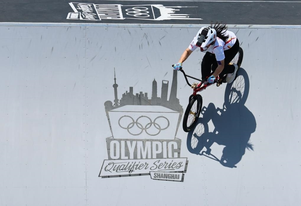 5月18日,在上海舉行的巴黎奧運(yùn)會資格系列賽上海站小輪車自由式女子公園賽決賽中,中國選手孫思蓓以95.86分的成績獲得冠軍。新華社記者 許雅楠 攝
