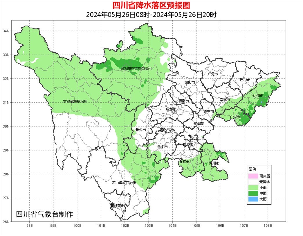 明天白天:盆地大部多云間晴,其中達州、廣安、瀘州3市有陣雨或雷雨;阿壩州大部、甘孜州北部東部、涼山州東北部多云間陰有分散陣雨或雷雨,其中阿壩州北部有中雨,甘孜州和攀西地區(qū)的其余地方多云間晴。