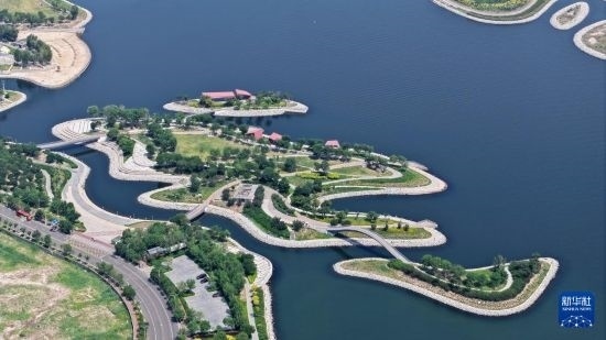 這是6月28日拍攝的天津市濱海新區(qū)南灣公園一景(無人機(jī)照片)。