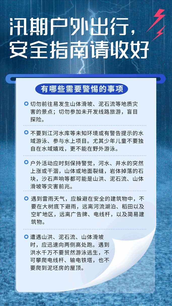 當(dāng)前正值暑假旅游旺季,也是汛期災(zāi)害事故易發(fā)多發(fā)時(shí)期。外出游玩時(shí)需要做好哪些安全防范工作?出游時(shí)又有哪些需要警惕的事項(xiàng)?一起來了解。