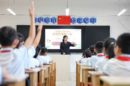 近日,吉林省四平市鐵西區(qū)人民法院依托法治副校長(zhǎng)工作機(jī)制,攜手四平市陽(yáng)光實(shí)驗(yàn)小學(xué)舉辦了一場(chǎng)生動(dòng)的“開(kāi)學(xué)第一課”,通過(guò)與同學(xué)們互動(dòng)問(wèn)答、角色扮演等形式,為青少年健康成長(zhǎng)營(yíng)造良好法治環(huán)境,不斷提升青少年群體的法治素養(yǎng)。圖為法官與同學(xué)們?cè)谡n堂上進(jìn)行互動(dòng)交流。(記者 孫兵 通訊員 任青陽(yáng))