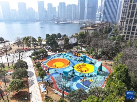 這是2月27日拍攝的長沙市銀杏公園一角(無人機照片)。