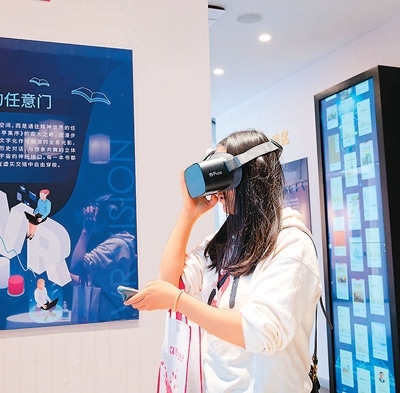 近日,云南省第四屆全民閱讀大會(huì)在昭通市昭通古城舉行?;顒?dòng)包括惠民書(shū)展、非遺體驗(yàn)、文創(chuàng)展銷等活動(dòng),營(yíng)造愛(ài)讀書(shū)、讀好書(shū)、善讀書(shū)的書(shū)香氛圍。圖為市民在云南省昭通市一家書(shū)店體驗(yàn)VR閱讀。