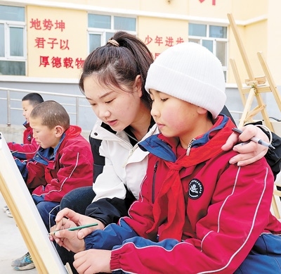 2023年,高潮從山西大同大學(xué)美術(shù)學(xué)院畢業(yè)前,看到了西部計(jì)劃的招募信息?!耙ツ敲催h(yuǎn)的地方當(dāng)老師嗎?”高潮有點(diǎn)猶豫。她小時候在鄉(xiāng)村小學(xué)讀書,因?yàn)槔蠋熒伲芏嗾n程都開展不起來,“想到自己小時候的經(jīng)歷,我下定了決心?!?/p>