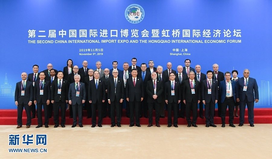 開幕式前,習近平同外方領(lǐng)導人集體合影,并親切會見世界500強企業(yè)家代表、出席“70年中國發(fā)展與人類命運共同體”論壇外方智庫媒體代表、出席世貿(mào)組織小型部長會議外方部長和代表團團長。