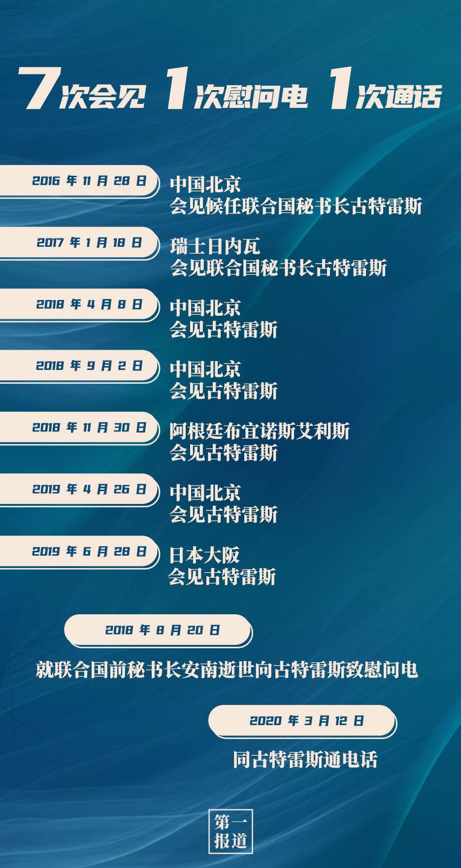 其中,習(xí)主席同聯(lián)合國“掌門人”的交往互動(dòng)最為頻繁,截至目前,習(xí)主席已7次會見聯(lián)合國秘書長古特雷斯。今年,在全球暴發(fā)新冠疫情的特殊情況下,習(xí)主席還通過“電話外交”同古特雷斯保持溝通交流: