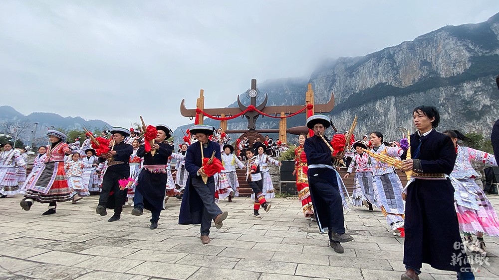 播放視頻畫中畫△視頻丨化屋村村民唱起苗族語歡歌,歌詞大意是“我們都是好朋友,一起跳舞吧”。(總臺央視記者楊立峰拍攝)