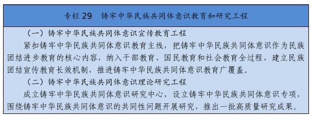 在全社會樹立和突出各民族共享的具有鮮明中華文化特征的文化符號和中華民族視覺形象,打造中國標志。堅定不移推廣普及國家通用語言文字,全面加強國家通用語言文字教育教學,積極穩(wěn)妥推行國家統(tǒng)編教材使用,深化雙語教學模式改革,確保少數民族學生掌握和使用國家通用語言文字。尊重、支持各少數民族語言文字的學習和使用。堅持以社會主義先進文化為引領,促進各民族文化交融、創(chuàng)新。提倡文明現代的生活方式,引導和幫助各族群眾追求現代文明生活,推進民族進步。強化全體公民日常行為規(guī)范,完善市民公約、鄉(xiāng)規(guī)民約、學生守則、行業(yè)規(guī)章、職業(yè)規(guī)則、團體章程,營造自覺遵法守法、尊重少數民族風俗習慣和宗教信仰、維護民族團結的社會氛圍。著力開展興邊富民行動,打牢守邊固邊的民族團結基礎。