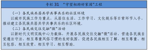 從居住生活、工作學習、文化娛樂等日常環(huán)節(jié)入手,積極營造各民族共居共學共事共樂的社會條件,開展各族群眾交流、培養(yǎng)、融洽感情的工作,形成密不可分的共同體。鼓勵各族群眾在民族地區(qū)和其他地區(qū)、城市和鄉(xiāng)村有序流動。做好城市民族工作,讓城市更好接納少數民族群眾、少數民族群眾更好融入城市社區(qū)。大力推進農村牧區(qū)現代化,加快補齊基礎設施和基本公共服務短板,不斷滿足各族群眾的美好生活需要,確保實現現代化一個民族也不能少。