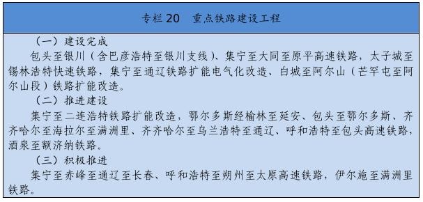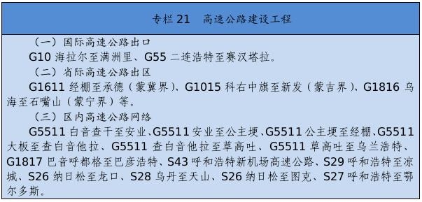 基礎設施保障更加有力。交通運輸、能源外送通道和引調水骨干工程接續(xù)落地。綜合交通運輸體系基本形成,接入全國高鐵網,呼和浩特至張家口高速鐵路,通遼、赤峰至京沈高速鐵路連接線,浩勒報吉至吉安鐵路順利建成,建成高速鐵路404公里。全區(qū)103個旗縣(市區(qū))全部通高等級公路,京新高速臨河至哈密、丹錫高速錫林浩特至巴林右旗等高速公路通車運營,所有鄉(xiāng)鎮(zhèn)(蘇木)和具備條件的建制村通硬化路,建成“四好農村路”6.6萬公里,綜合交通網總里程達到22.5萬公里。呼和浩特新機場開工建設,呼倫貝爾、包頭、通遼等機場完成改擴建。新建通用機場15個,民用機場達到40個。黃河內蒙古段二期防洪、引綽濟遼、東臺子水庫等重大水利工程建設順利推進。全區(qū)5G基站突破1萬個。建成5條特高壓外送電通道??耸部蓑v至北京煤制氣管道投入運營。呼和浩特地鐵1、2號線一期工程建成運營。
