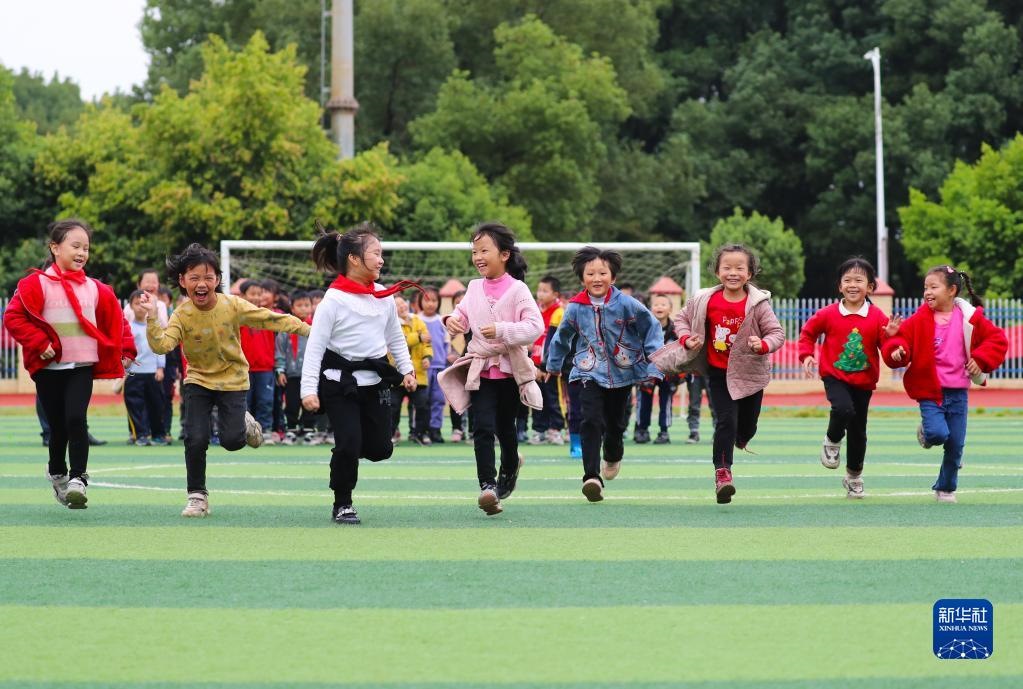 11月4日,在湖南省永州市新田縣雙碧小學(xué),孩子們在運(yùn)動場上做游戲。今年秋季學(xué)期開學(xué)以來,各地積極落實(shí)“雙減”政策,利用課后服務(wù)時(shí)間開展內(nèi)容豐富、形式多樣的課外活動,促進(jìn)學(xué)生全面發(fā)展。新華社發(fā)(劉貴雄攝)
