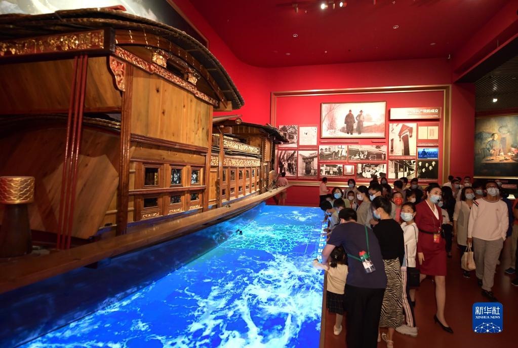 觀眾在中國共產(chǎn)黨歷史展覽館參觀(2021年10月1日攝)。新華社記者李賀攝