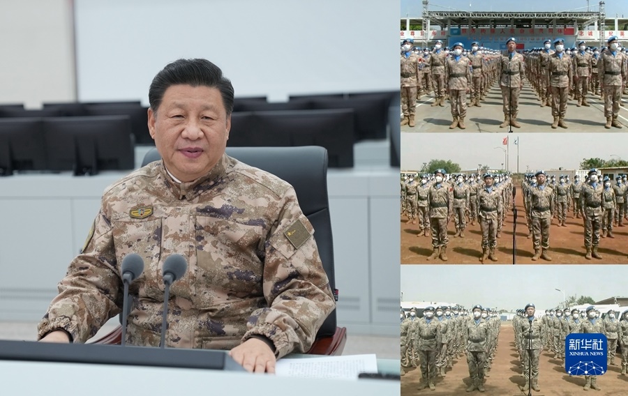 隨后,習(xí)近平同中部戰(zhàn)區(qū)海外維和分隊(duì)進(jìn)行視頻通話。來(lái)自維和步兵營(yíng)、工兵分隊(duì)、醫(yī)療分隊(duì)、直升機(jī)分隊(duì)的同志們整齊列隊(duì),依次向習(xí)近平報(bào)告。習(xí)近平向他們,并向我軍正在海外執(zhí)行任務(wù)的全體官兵表示慰問(wèn)。習(xí)近平強(qiáng)調(diào),要忠實(shí)履行維和使命,為維護(hù)世界和平貢獻(xiàn)更多中國(guó)力量,向世界展示中國(guó)軍隊(duì)良好形象。維和任務(wù)區(qū)環(huán)境復(fù)雜,要注意加強(qiáng)安全防范,搞好疫情防控。