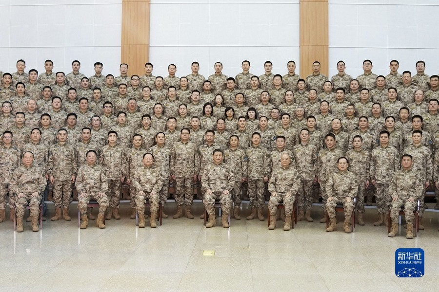 1月28日,中華民族傳統(tǒng)節(jié)日春節(jié)即將來(lái)臨之際,中共中央總書(shū)記、國(guó)家主席、中央軍委主席習(xí)近平到中部戰(zhàn)區(qū)視察慰問(wèn),代表黨中央和中央軍委,向全體人民解放軍指戰(zhàn)員、武警部隊(duì)官兵、軍隊(duì)文職人員、民兵預(yù)備役人員致以誠(chéng)摯問(wèn)候和新春祝福。這是習(xí)近平親切接見(jiàn)中部戰(zhàn)區(qū)官兵代表,同大家合影留念。新華社記者 李剛 攝