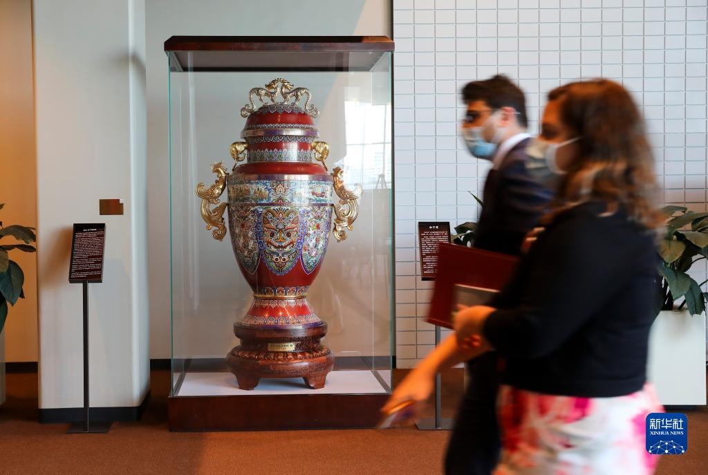 這是2021年10月21日在紐約聯(lián)合國總部拍攝的和平尊。新華社記者 王迎 攝