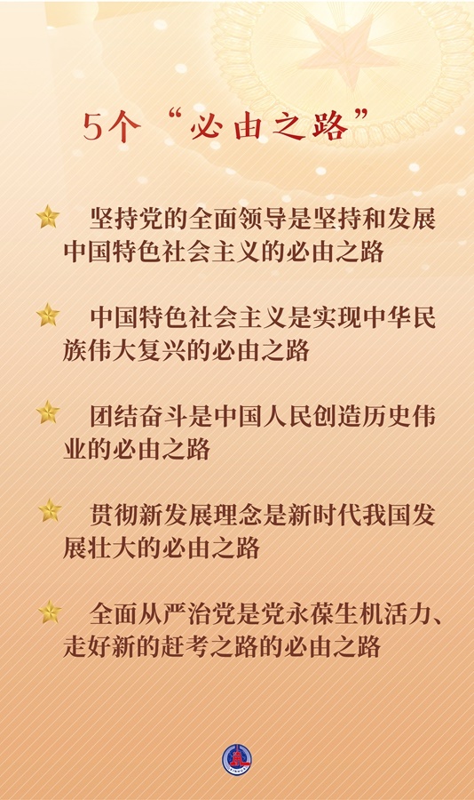 在關(guān)鍵歷史節(jié)點概括的這5個“必由之路”,既揭示“過去我們?yōu)槭裁茨軌虺晒Α?,更指明“未來我們怎樣才能繼續(xù)成功”,展現(xiàn)出在新起點上團結(jié)帶領(lǐng)人民開創(chuàng)未來的強烈歷史自信。